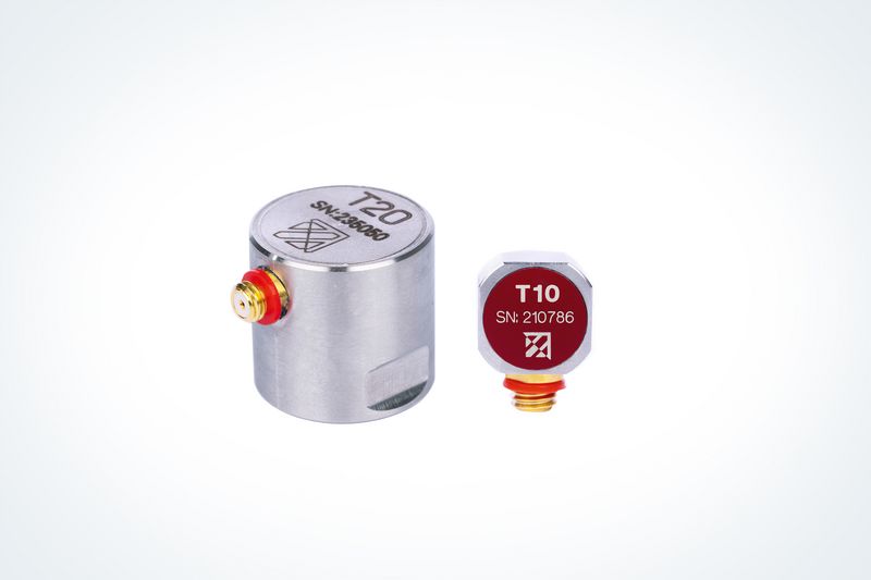 Die Ultraschallsonde T10 eignet sich aufgrund ihrer kompakten Passform besonders für Prüfungen an schwer zugänglichen Stellen. Der Ultraschallwandler T20 überzeugt durch eine stabilen, linearen Frequenzgang im Ultraschallbereich und wird für die Dauerüberwachung mittels Gewindestift innerhalb einer Sicherheitsabdeckung/-zone stabil befestigt.
