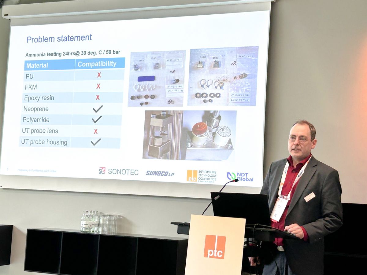 From May 6 to 8, 2025, the anniversary edition of the Pipeline Technology Conference (PTC) took place in Berlin. For the 20th time, leading companies, experts, and decision-makers from the pipeline industry gathered to discuss current developments, challenges, and innovations. SONOTEC once again participated as an exhibitor – with its own booth (J9) and a joint technical presentation with long-standing partner NDT Global.