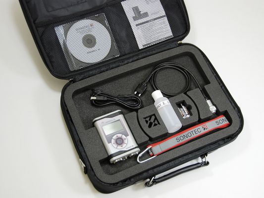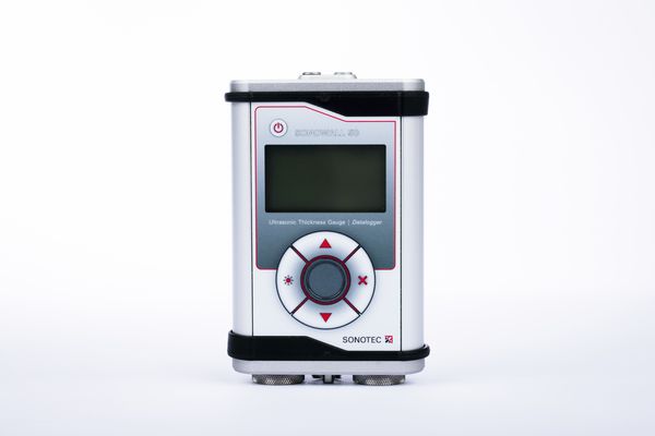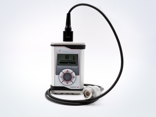 The light and compact ultrasonic wall thickness gauge SONOWALL 50 enables the precise measurement of the wall thickness of components made of metal, glass, ceramics, and plastics. This efficient ultrasonic device allows the measurement of materials with both flat and curved surfaces. The wall thickness gauge enables the quick and simple detection of the first signs of wear and corrosion, for example, on ships, storage tanks, pipelines and cranes etc.