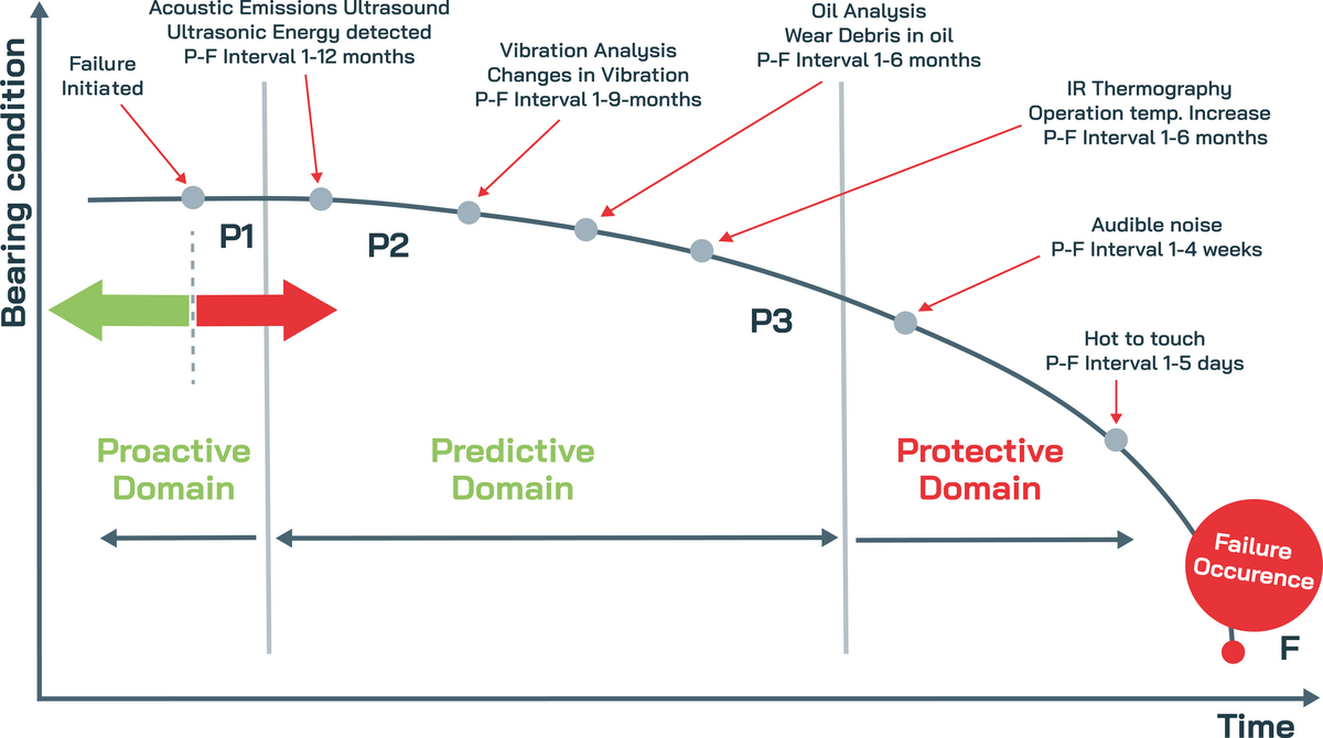 Ultrasound will enable you to detect damages at the earliest possible stage compared to other technologies. This is due to the fact that the acoustics in bearings are the first parameter which will change. Vibrations, noises that can be noticed by humans, and heat development only occur in advanced stages of damage. At this point, the bearing is already showing signs of damage and may need to be replaced quickly to avoid downtime.